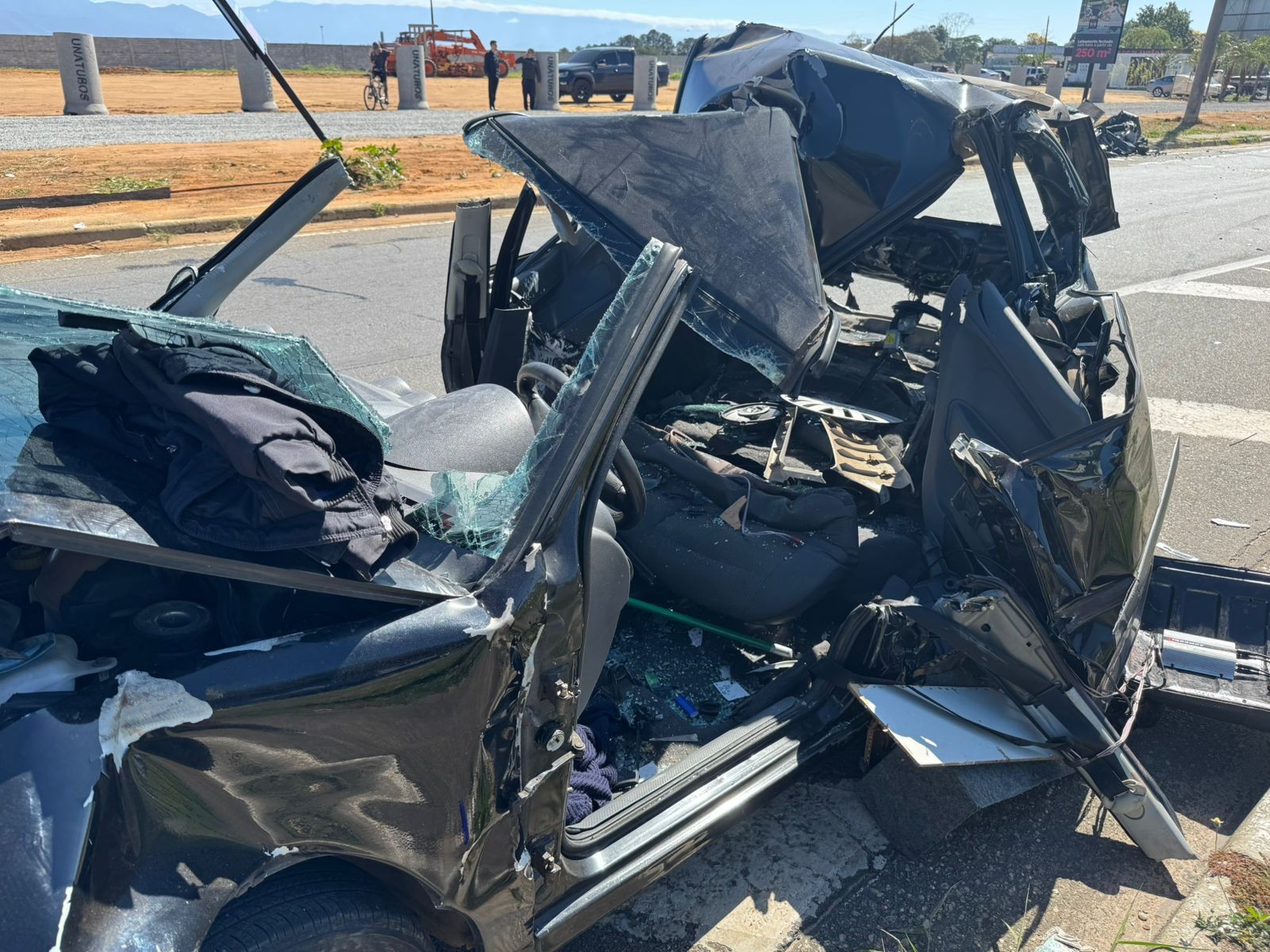 Casal é resgatado das ferragens após carro ser prensado em acidente em Taubaté