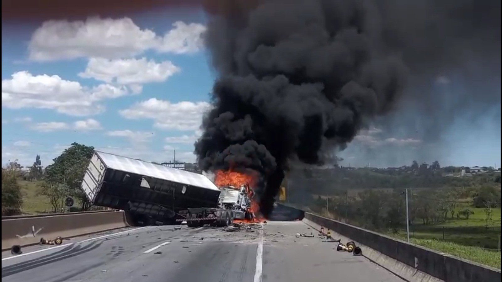 Acidente entre carro e caminhões interdita sentido SP da Dutra, em Pindamonhangaba